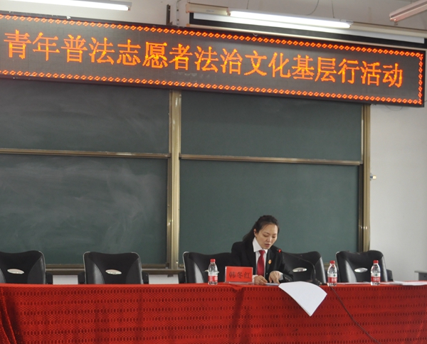 近两年来,该院将司法审判与法制教育紧密结合,抓住“五一”“六一”等节日,积极开展法律进厂矿、进乡村、进学校、进社区,司法活动延伸到审判台下、法院门外,让更多的社会公众了解法律规范,了解司法审判工作,与社会公众形成良性互动。据不完全统计,迄今已开展法律知识讲座十一次,受众2000余人。