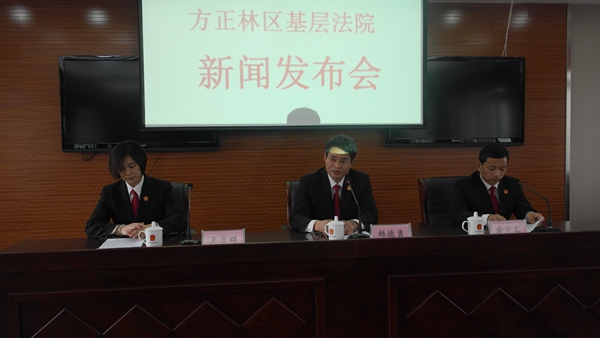 新闻发布会由新闻发言人、政工科科长王立群主持,副院长韩德勇、审管办审判员金少文作新闻发布,方林电视台记者、社区干部、群众代表等参加此次新闻发布会。