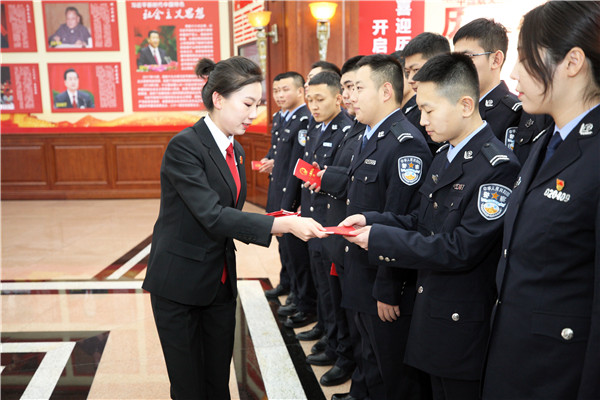 在第六个国家宪法日来临之际,12月3日,哈尔滨铁路公安处32名新入职公安民警来到省法院,参加“公众开放日”,开展“筑法治信仰精神,展新时代铁警作为”主题实践活动。省法院向每一名参观的公安民警发放了宪法单行本。