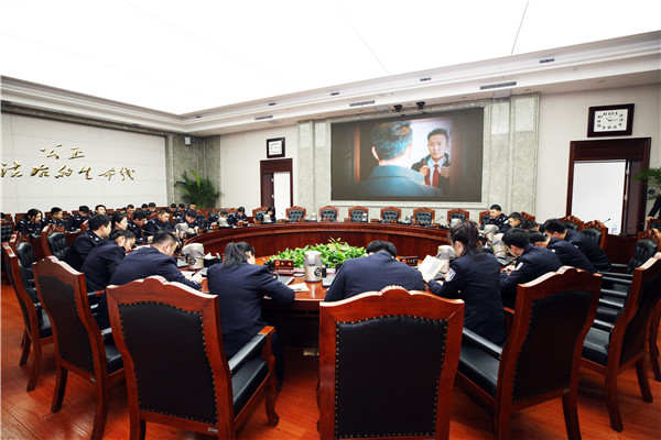 在审委会会议室观看微电影《我是法官》 赵炳松 摄
