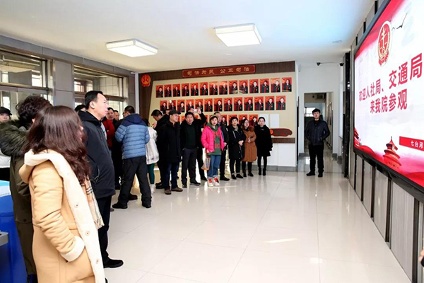 在讲解员的引领下,人社局和交通局工作人员参观了法院文化建设,在法官展示墙前,了解了七台河中院审判团队建设及法官公开情况,在书香法院文化长廊,对“书香法院”四条文化主线及主题活动月进行参观。
