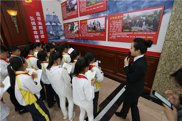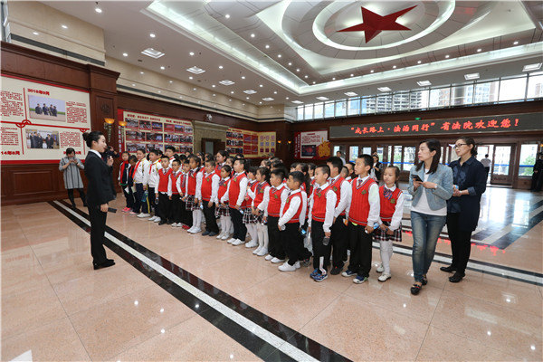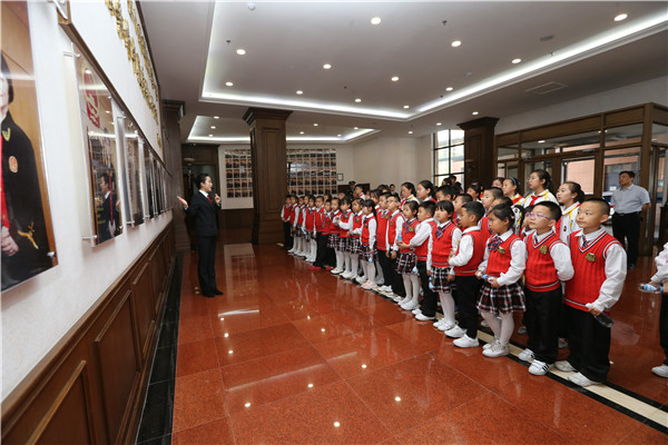 法院是什么地方呢?法院里都有什么呢?带着许许多多的疑问,孩子们满怀期待,踏着欢快的步伐走进省高院办公大楼,来到党建大厅,孩子们立刻变得严肃认真起来,敬仰、敬畏之心立即呈现在孩子们的脸上。