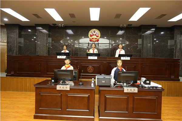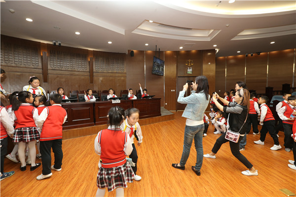 走进科技法庭,孩子们眼里充满了好奇,看到了只有在电视剧里才能看到的场景,孩子们争着抢着跑到审判席上扮演起“小法官”来。