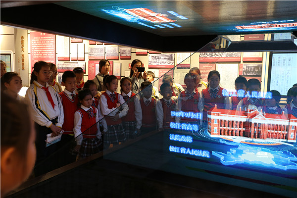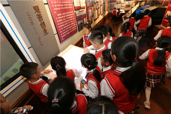 随后参观了法官监督墙、院史馆和图书馆。在院史馆里,孩子们边看边听讲解员的介绍,对黑龙江法院的发展历史有了形象的了解;浮雕展墙让他们感受到龙江法官们司法为民、公正司法的情怀;他们还有秩序地观看体验了电子书、三维全息投影、3D纱幔等电子设备,孩子们不断发出赞叹声。