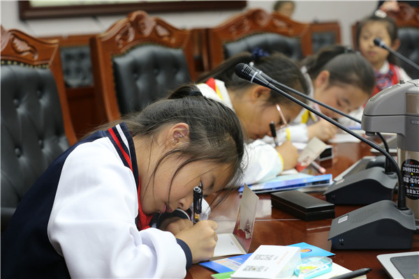 “这个六一儿童节过得很有意义,很难忘!”......在留言卡上,孩子们激动地写下了他们的感受和心愿。还有一个孩子在他的日记本上整齐地抄写了宪法宣誓誓词。