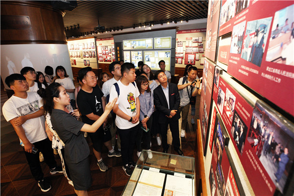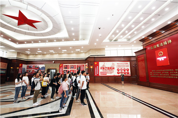 初次走进党建大厅,令大家印象最深刻的当属那一面巨大的红色宪法墙,仿佛是在不断提醒每一位走进来的人,我国是法治国家,要依法办事依法做人,这是同学们的第一感受。