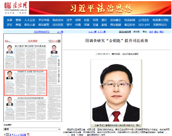 《法治日报》:用调查研究“金钥匙”提升司法质效