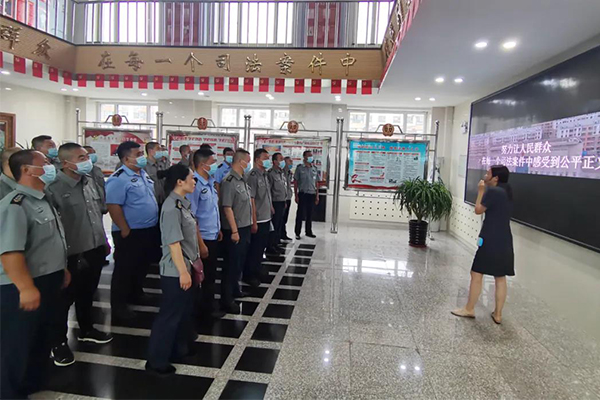 讲解员引导员工们先后到安检区域、立案大厅、法院文化长廊、羁押室、刑事审判法庭、院史室、等场所,进一步明晰了办案流程,感受法院工作氛围,对法院审判流程及各项工作开展情况有了更加直观的认识和理解。