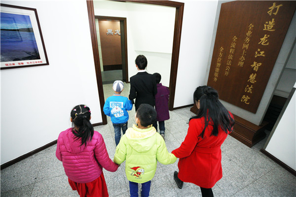 4月2日上午,孩子们在福利院老师的带领下师生一行33人,兴奋而有序地走进了省法院,每个老师手牵两个孩子,场面十分温馨。