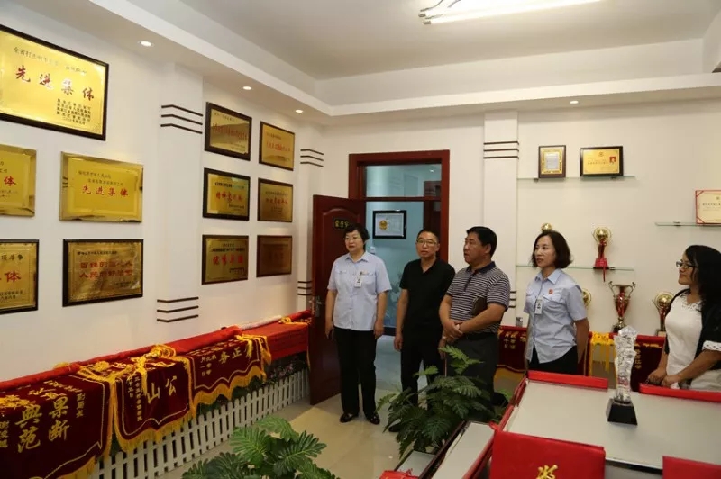 司法局干警们依次参观了主楼二楼大厅的院训、德柱、法柱、十九大精神宣讲图板、文化长廊、党群活动中心(党员远程教育中心)、荣誉室和院史室。