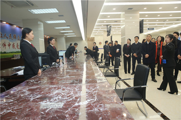 参观诉讼服务中心立案大厅 陈凡 摄