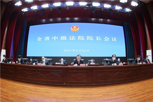 2月26日上午,省法院召开全省中级法院院长会议,会议坚持以习近平新时代中国特色社会主义思想为指导,深入学习贯彻习近平法治思想,全面贯彻落实中央、省委政法工作会议和全国高级法院院长会议、全省“两会”精神,总结工作,分析形势,研究部署今年工作。省法院党组书记、院长石时态出席会议并讲话。