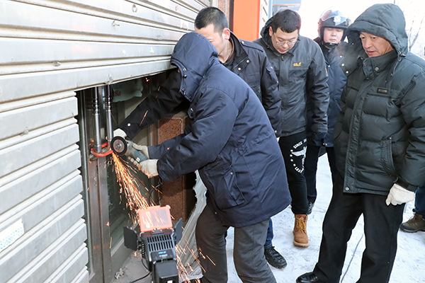 拆解门市房大门。朱丹钰 摄