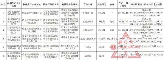 标称哈尔滨鑫盛肉制品有限公司生产的哈尔滨干肠、哈尔滨市道里区盛达肉食品加工厂生产的远霞卤鸡爪、哈尔滨啸山林食品有限公司生产的儿童肠,均被检出了菌落总数超标的问题。