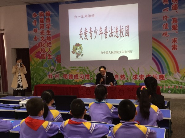 他们结合自己多年审判工作中接触到的案例,针对小学生的群体特征,从发生在学生身边的问题为切入点,以案释法,以法论理,并和学生们做了精彩的互动,告诉在座同学们要防微杜渐,遵纪守法。通过这次讲座,第五小学的学生们对青少年犯罪的成因和类型有了更清楚的认识。