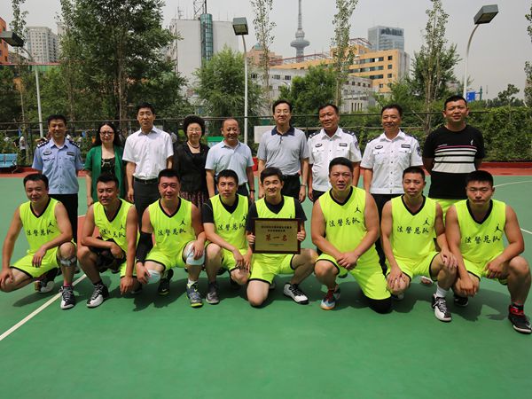院领导与篮球比赛冠军法警总队合影。 徐世敏摄