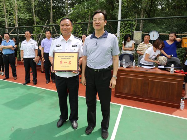 7月17日上午,法警总队篮球队从省法院党组书记、院长张述元手中接过了篮球比赛冠军奖牌,至此,省法院机关第四届全民健身体育运动会完成了全部七项比赛项目,圆满落下帷幕。