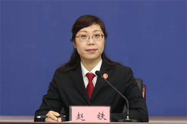 省法院新闻发言人、宣传信息处处长赵铁主持发布会。朱丹钰 摄