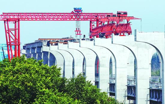 滨北线松花江公铁两用桥架设引桥 预计年底通车