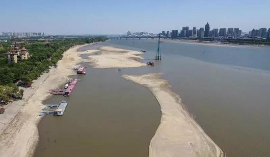 前几天,松花江哈尔滨段水位走低江水缩成细细的一线,大片江底的沙泥滩露出了水面。