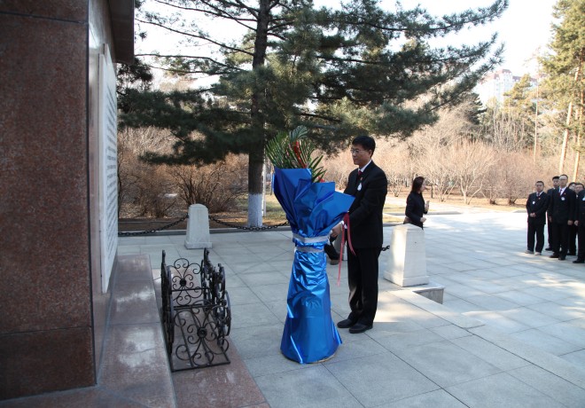 林区中院党组书记、院长李大伟代表中院机关全体党员、干警向革命烈士敬献花篮