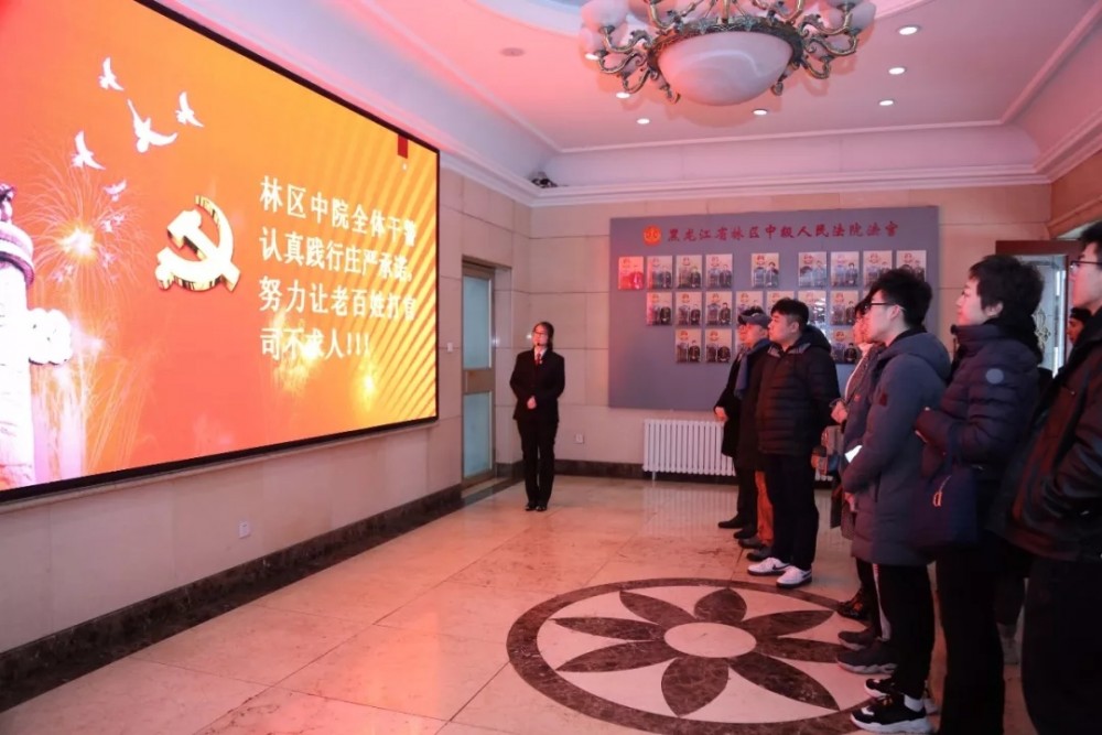3月21日上午,林区中院诚邀哈尔滨师范大学美术学院师生一行30人走进林区中院,感受法治氛围。
