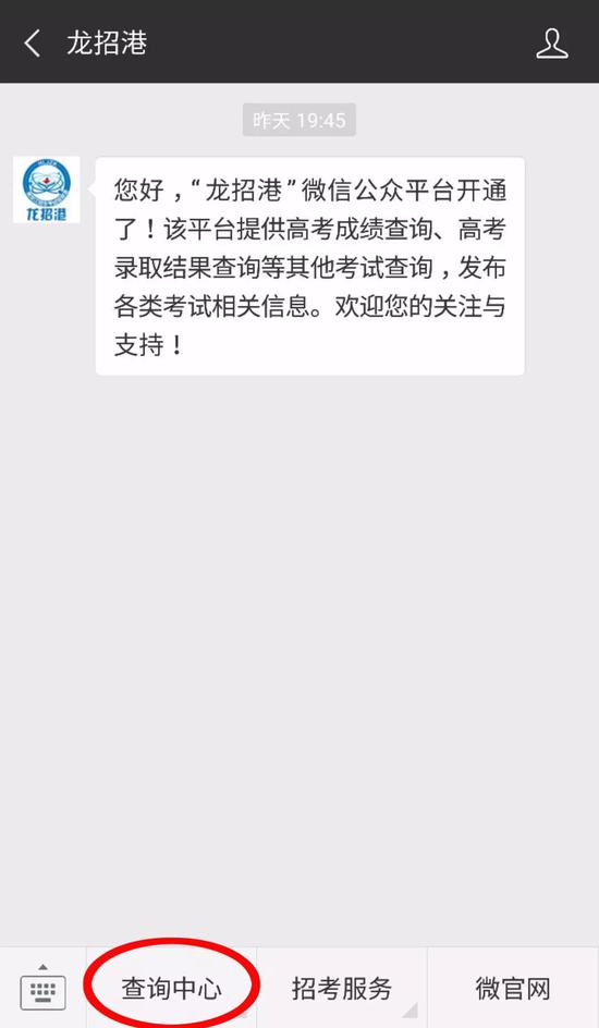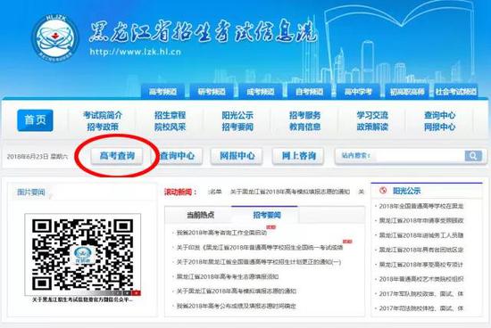可通过扫描下方二维码或关注“龙招港”(订阅号:hljlzk),进入公众号主页点击左下角“高考查询”,输入相关考生信息查询高考成绩。