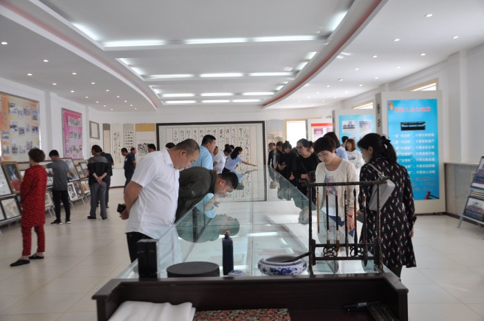 在八楼文化建设展厅,人民陪审员们仔细欣赏评析着全市法院干警创作的书画摄影作品,尤其是对干警出版的书籍表现出极大的兴趣。