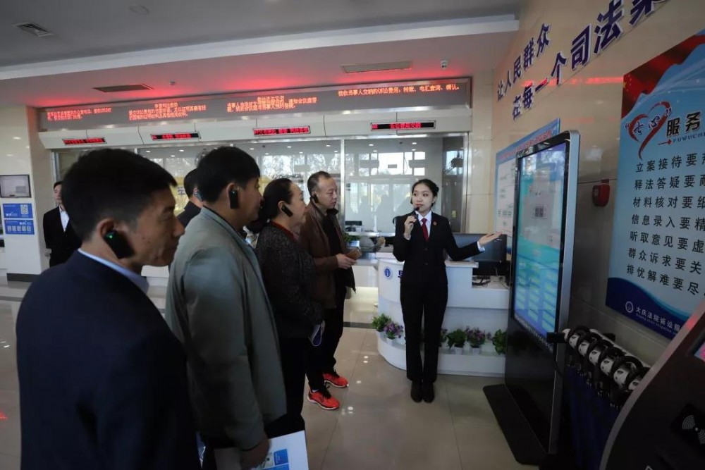 在诉讼服务中心,讲解员详细介绍了立案服务区、信访服务区、诉调对接中心、视频接访室及心灵驿站的设置与功能,现场就自助立案机、智能填单机等司法服务设施进行了实际操作。参观人员对于法院为群众提供的一系列高效便捷的诉讼服务举措给予一致认可。
