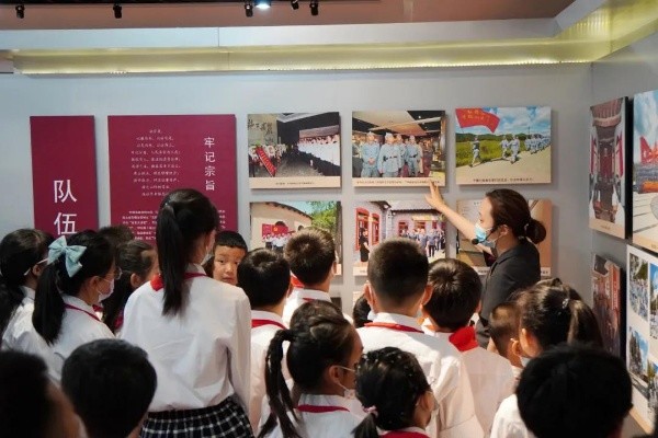 来到党建大厅,同学们认真聆听红船的故事、长征的故事……接受红色教育,向革命先烈致敬。