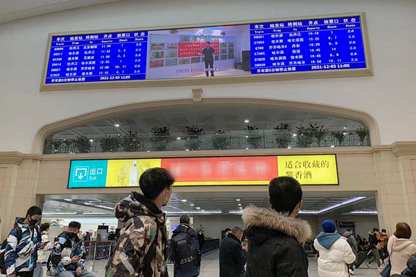 在候车室的大屏幕上,讲解员带领旅客们“云”参观了信息集控中心、荣誉室、文化长廊、诉讼服务中心、执行指挥中心和科技法庭等场所,展示了“打官司不求人”系列司法便民举措和“我为群众办实事”实践活动成果,并播放了省法院“公众开放日”宣传片和2021年“国家宪法日”宣传片。