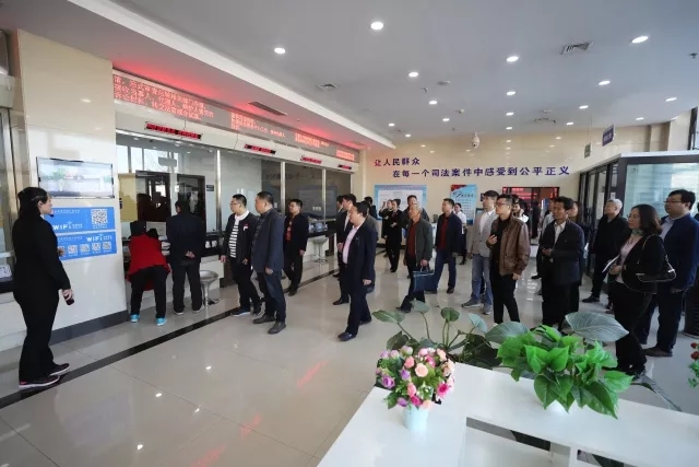 在讲解员的引导下,各位劳模代表参观了安检大厅、诉讼服务中心、审判法庭、家事审判区,为审判流程正规化、家事审判人性化和庭审科技化点赞。