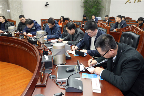 在审委会会议室观看专题片 赵炳松 摄