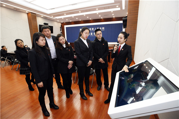 “身兼重任,砥砺前行,维护社会公平正义!”这是来自一位教师的感叹,在科技法庭,教师们应邀坐上审判席,进行了一次法官角色体验。在新闻中心还了解到庭审直播和网上立案等举措,大家表示信息化与司法工作的结合让法院工作公开透明,也给老百姓带来了方便。