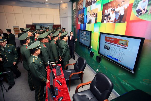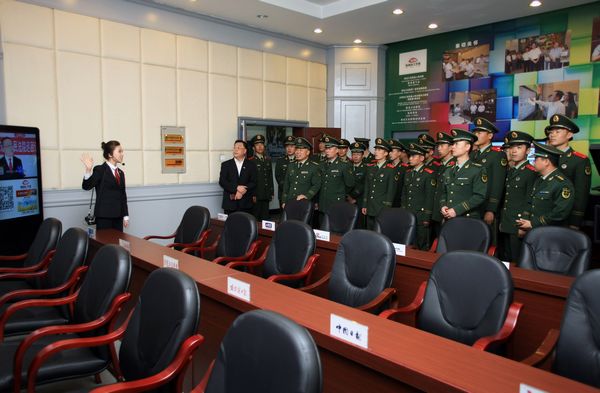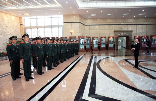 在新闻发布厅,通过讲解员的讲解,武警官兵们了解了黑龙江法院运用“互联网+”思维加强新媒体司法宣传,用好传统媒体、用足网络媒体、用活微媒体的工作思路,通过登录《黑龙江法院网》、官方微博微信、手机APP“一网双微客户端”,体验了黑龙江法院司法公开的新途径和一站式司法服务平台。