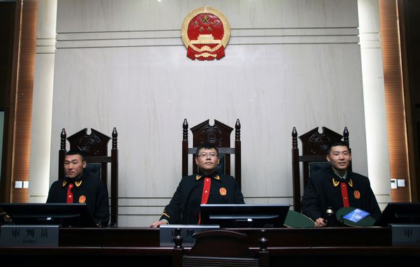 在第三法庭,大家穿上法袍、敲响法槌,神采奕奕、威严庄重,体验法官的责任与担当。