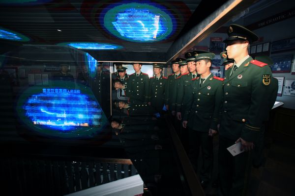“煌煌龙江,国之长子,物华天宝,人杰地灵。倏忽七十载,砥砺正前行”。官兵们通过历史回廊、镇反要案、龙法英模、法院历年大事记等主题展板,追寻黑龙江地区法院七十载的历史轨迹,感悟几代黑龙江法院人司法为民、公正司法的法治追求。同时还通过三维全息投影观看了黑龙江地区“五省一市”高等法院办公旧址和省高级人民法院各个时期院址的动态变化。3D纱幔全息投影也向指战员们展现了人民法官和人民司法警察服装的历史变迁。