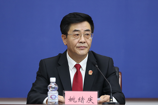 党组成员、政治部主任、新闻发言人姚绪庆主持发布会。朱丹钰 摄