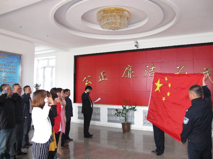 6月11日,伊春市汤旺河区法院组织人民陪审员进行了庄严的宣誓活动。面向五星红旗,人民陪审员举起右拳,大声宣读誓词:“我是中华人民共和国人民陪审员,我宣誓:忠于国家,忠于人民,忠于宪法和法律。依法参加审判活动,忠实履行陪审职责,廉洁诚信,秉公判断,维护社会主义公平正义。”