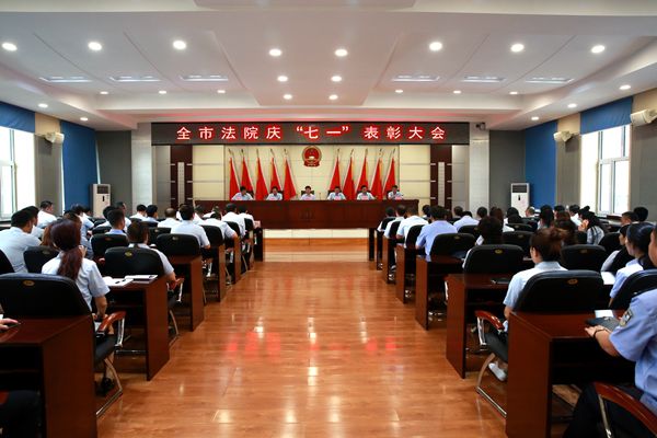 在中国共产党诞辰96周年之际,6月29日,七台河市中级人民法院召开全市法院庆“七一”表彰大会,表扬先进集体和先进个人,激励全体党员干部立足岗位、再建新功。七台河中院党组书记、院长朱晓天出席会议并作重要讲话,中院党组成员、基层法院院长及中院全体干警参加会议。会议由中院党组副书记、副院长关长仁主持。