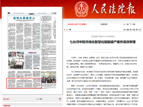 《人民法院报》:七台河中院市场化智慧化赋能破产案件高效审理