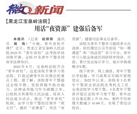 《人民法院报》报道黑龙江宝泉岭法院:用活“夜资源” 建强后备军