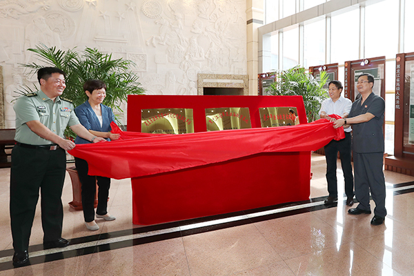 黑龙江高院党组副书记、常务副院长孙洪山(右一)与省直机关工委、省军区、省教育厅领导共同揭牌 朱丹钰 摄