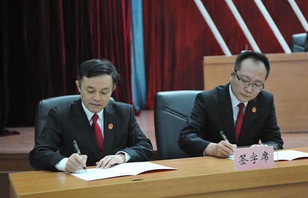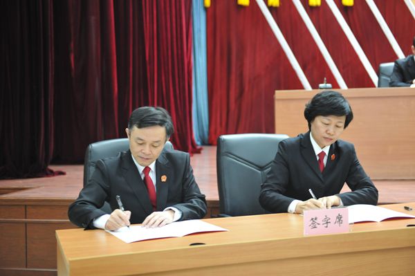 省法院党组书记、院长石时态与铁路中院党组书记、院长陈永刚签订2018年度党风廉政建设责任书 所行 摄