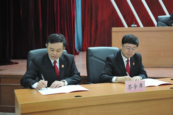 省法院党组书记、院长石时态与省农垦中院党组书记、院长张国斌签订2018年度党风廉政建设责任书 所行 摄