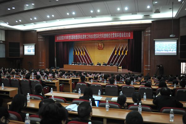 2月27日,黑龙江高院召开了全省法院2018年党风廉政建设和反腐败工作会议暨深化作风整顿优化营商环境动员大会,深入学习贯彻党的十九大和十九届二中全会、十九届中央纪委二次全会、全国法院党风廉政建设和反腐败工作会议,以及全省整顿作风优化营商环境大会精神,总结2017年工作,研究部署2018年工作。党组书记、院长石时态与林区、农垦、铁路中院院长和省法院机关各部门负责人签订了党风廉政建设责任书。他要求,全省法院要坚持以习近平新时代中国特色社会主义思想为指导,贯彻新时代党的建设总要求,一以贯之、坚定不移推进全面从严治党、从严治院,深入推进全省法院党风廉政建设和反腐败斗争,扎实开展整顿作风优化营商环境工作,着力锻造一支让党放心、让人民满意、忠诚可靠、清正廉洁的过硬法院干部队伍。党组成员、副院长孙洪山主持会议。党组成员、省纪委驻省法院纪检组组长解维全通报了典型案例。