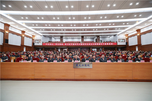 省法院党组书记、院长石时态,省法院在哈院领导出席报告会。陈凡 摄
