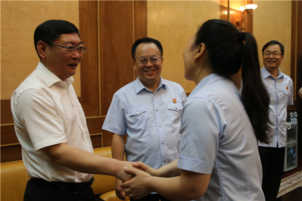 省委政法委、省法院等省市领导接见“我最喜爱的好法官”刘春荣。陈凡 摄
