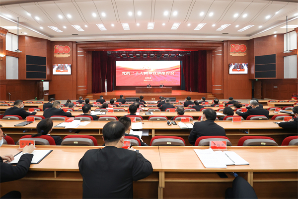 石时态从党的二十大的主题和主要成果、过去五年的工作和新时代十年的伟大变革、开辟马克思主义中国化时代化新境界、新时代新征程中国共产党的使命任务、全面建设社会主义现代化国家的战略安排和目标任务、全面建设社会主义现代化国家的重大部署、坚持党的全面领导和全面从严治党等七方面,作了全面、系统、深刻的阐释解读。