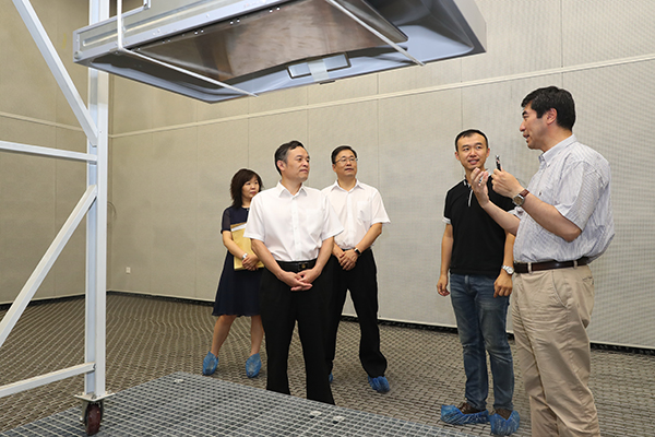 石时态院长在全消声室听取研究介绍。朱丹钰 摄